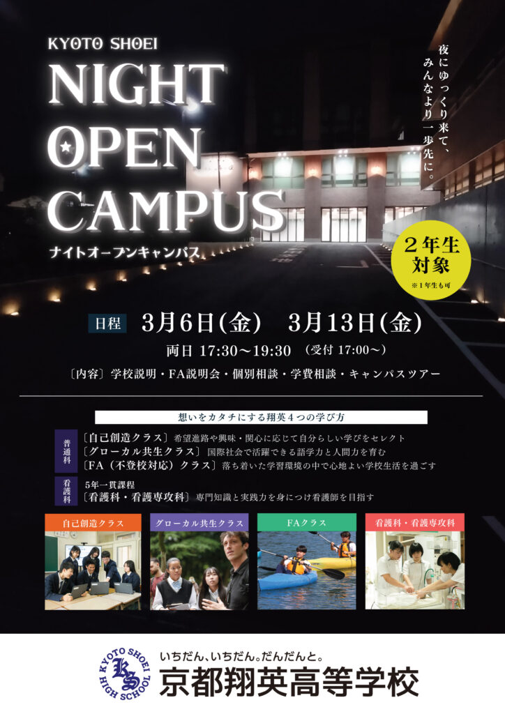 両日とも17:30からナイトオープンキャンパスを開催します。