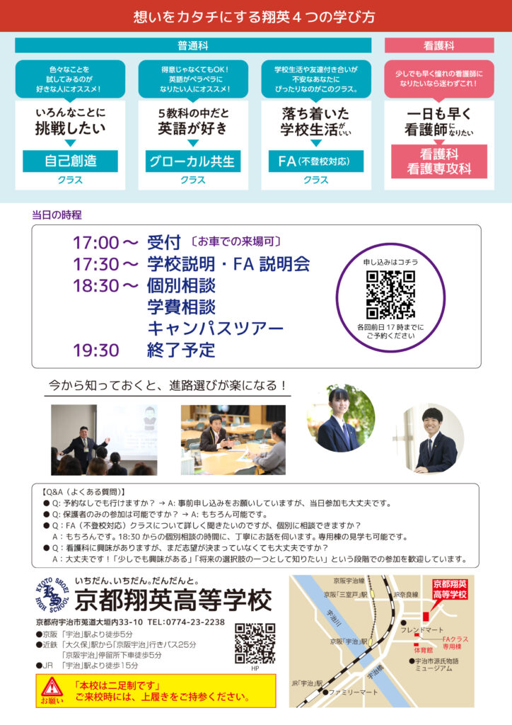 夜にゆっくり来て、みんなより一歩先に進路を考えてみませんか。