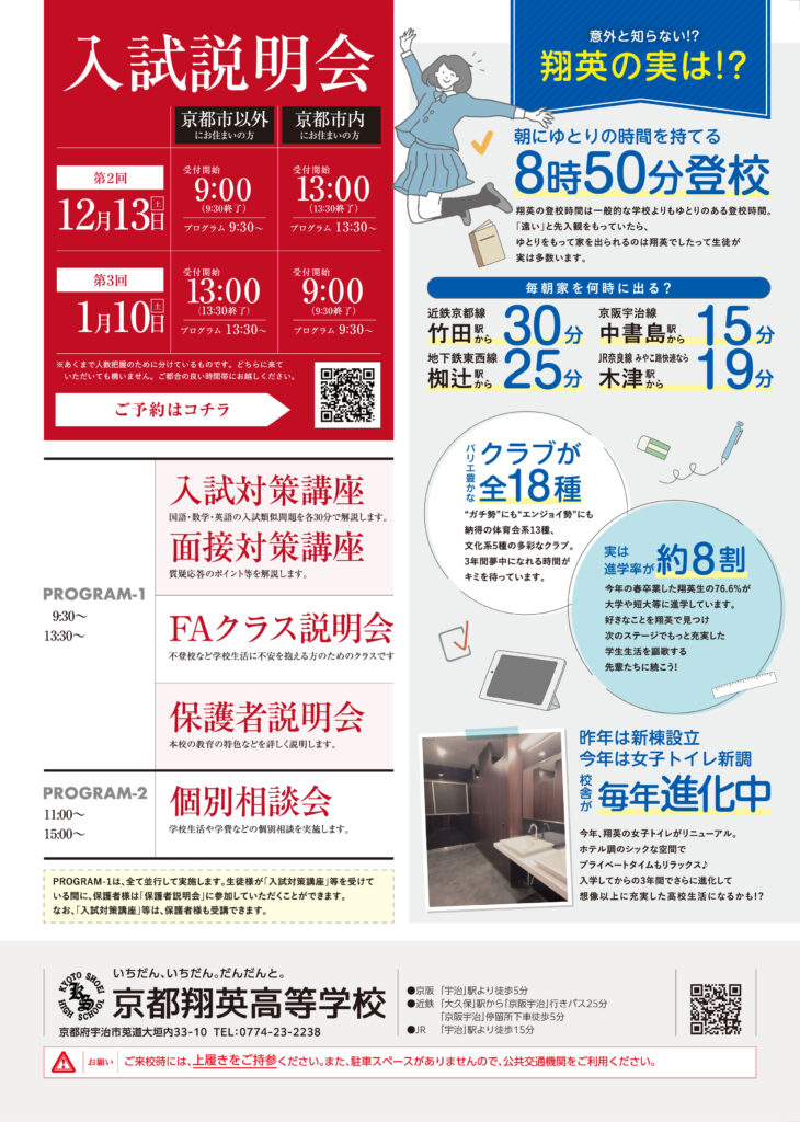 第2・3回入試説明会の「入試対策講座」では、来場者限定の入試類似問題解説をします。